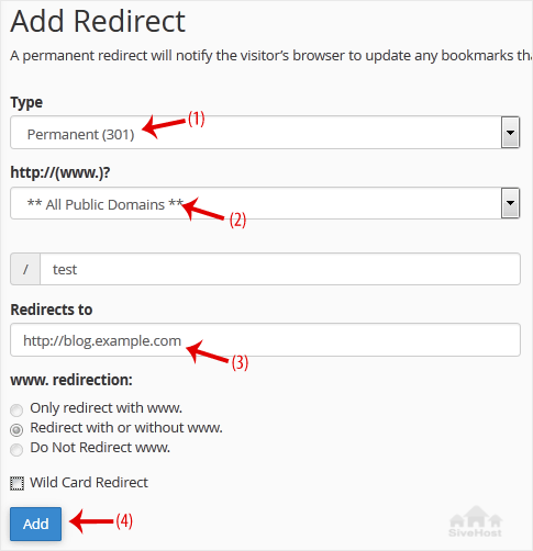 3. Under Add Redirect, you should enter the following details and choose the appropriate options.