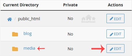 4. Click on the Edit, showing next to the directory you want to protect.