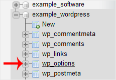 4. Select the appropriate table you want to edit. If you wish to change the blog name of WordPress, then select "wp-options".