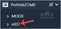 4. On the left side, locate the Portal/CMS category. Click on it and then on the e107 link that appears.