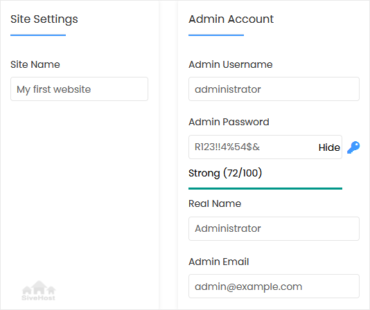 • Admin Email: Your e-mail address.