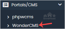 4. On the left side, locate the Portal/CMS category. Click on it and then on the WonderCMS link that appears.