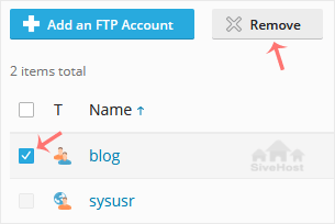 5. Checkmark the appropriate FTP accounts and click on Remove.